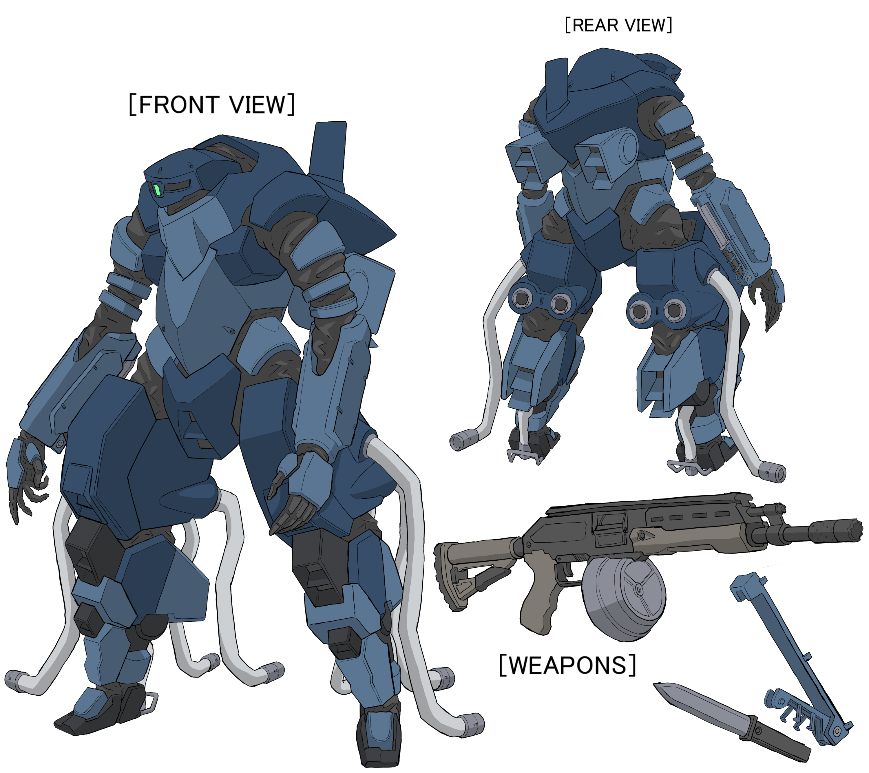 第三世代のミキシング・モデルGSであり、特に接近戦に特化したカスタム機。全身を濃淡の青で彩り、重装甲化された体躯を全面に押し出しながら戦場を疾走する。右腕部に装備された伽御廉重工製のモーターナイフ「藍銅」は、刺突に特化させた超剛性タイプであり、突撃力の向上に一役買っている。