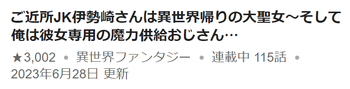 『ご近所JK伊勢崎さんは異世界帰りの大聖女』の評価が☆3000を超えました!やったー\(^o^)/