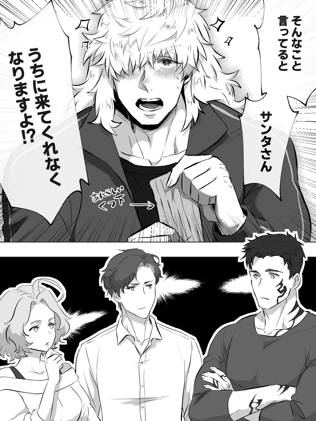絵までつける予定ではなかったんですが、昨日数時間だけチャンスがありそうなタイミングがあったのでザザーッと。兄貴&姉貴たちいつもと変わらないの笑うww服まで考えてる時間なくてごめんね…(ガルシは本文で描写してしまったのでジャージ姿)