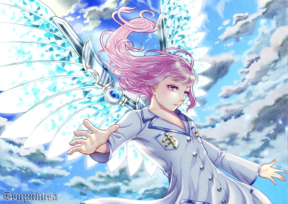 自身の白い翼を、複雑な表情で見つめるフェイヴァ。