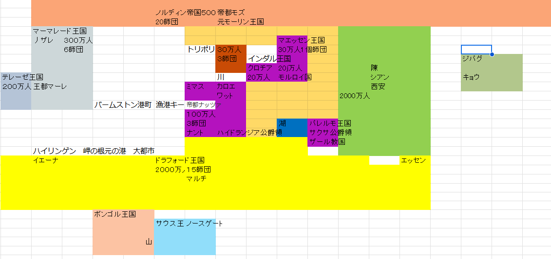 白は海ないし水辺、帝都ナッツァがクリスらのいる所です。