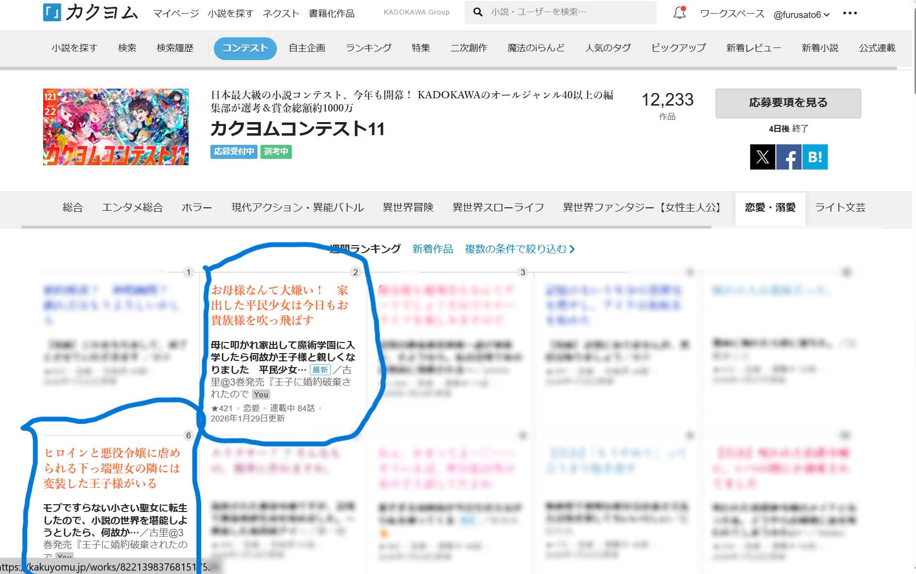 カクヨムコンテスト11第2位と7位に作品がランクインしております