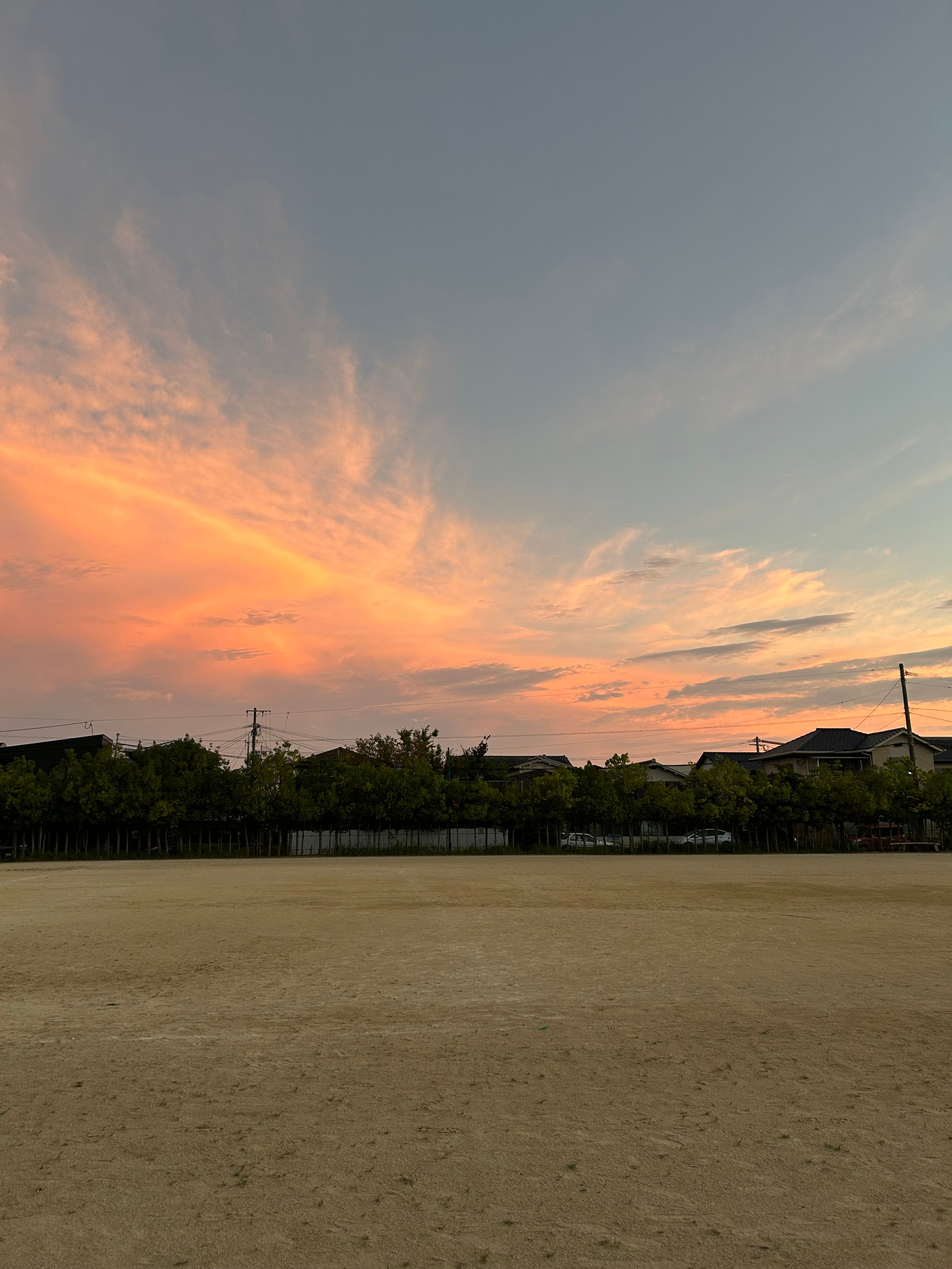 写真は毎朝歩いているグラウンドから今朝の空を写したものです。
