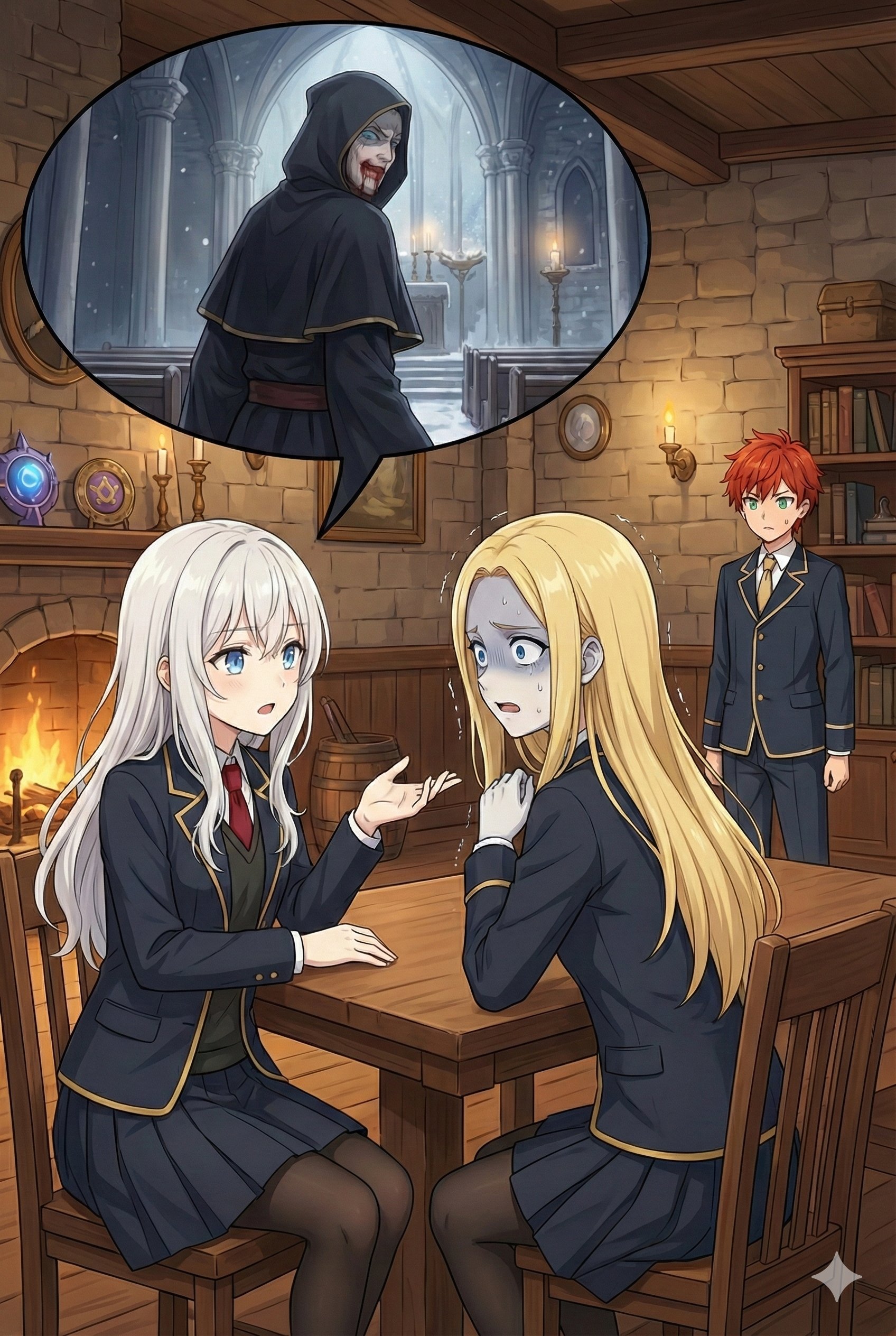 「フィオナさん、わたしが話したお話が怖かったようで」