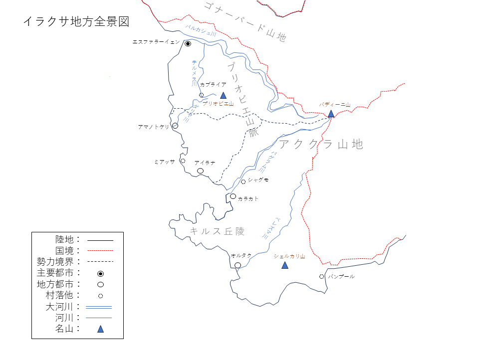 連載しておりますカスタロフカ島放浪記第一章の舞台であるイラクサ地方地図です。