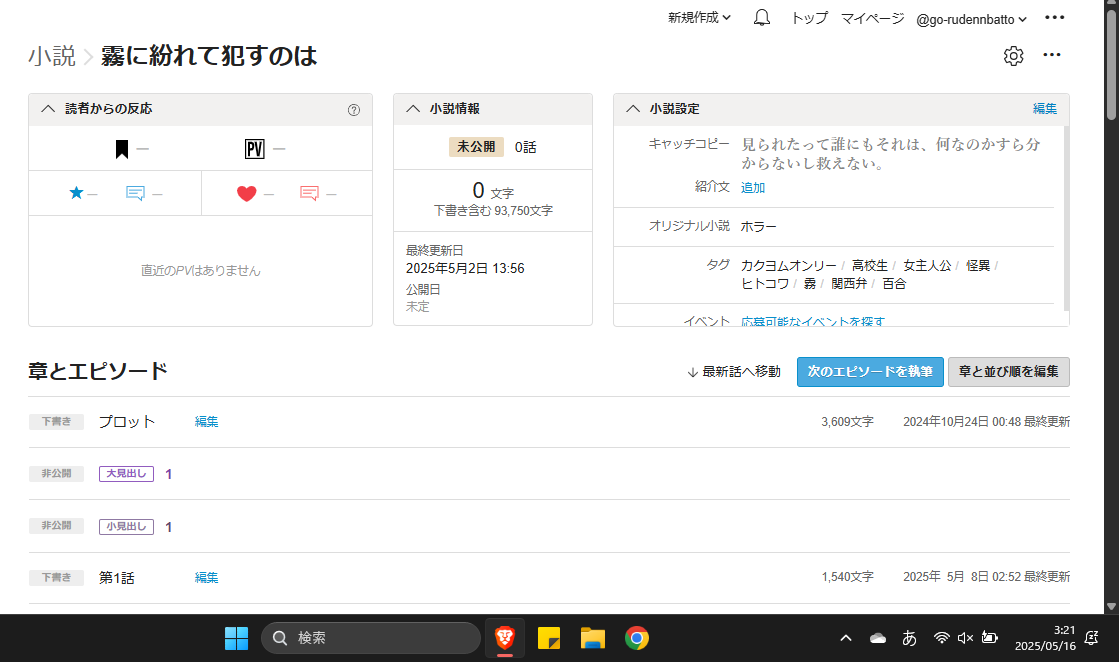 十万文字程度で完成+どっかの賞かコンテストに応募を目標に執筆中ホラー長編の進捗報告です。添付している画像をご覧下さい。