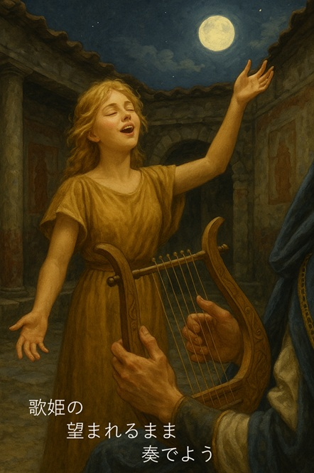 頂いたイラストと、ぼくの中に思い描いていたルパナーレの中庭、奏でられるリラ、そして歌姫、そのイメージの悉くが一致しているのです。