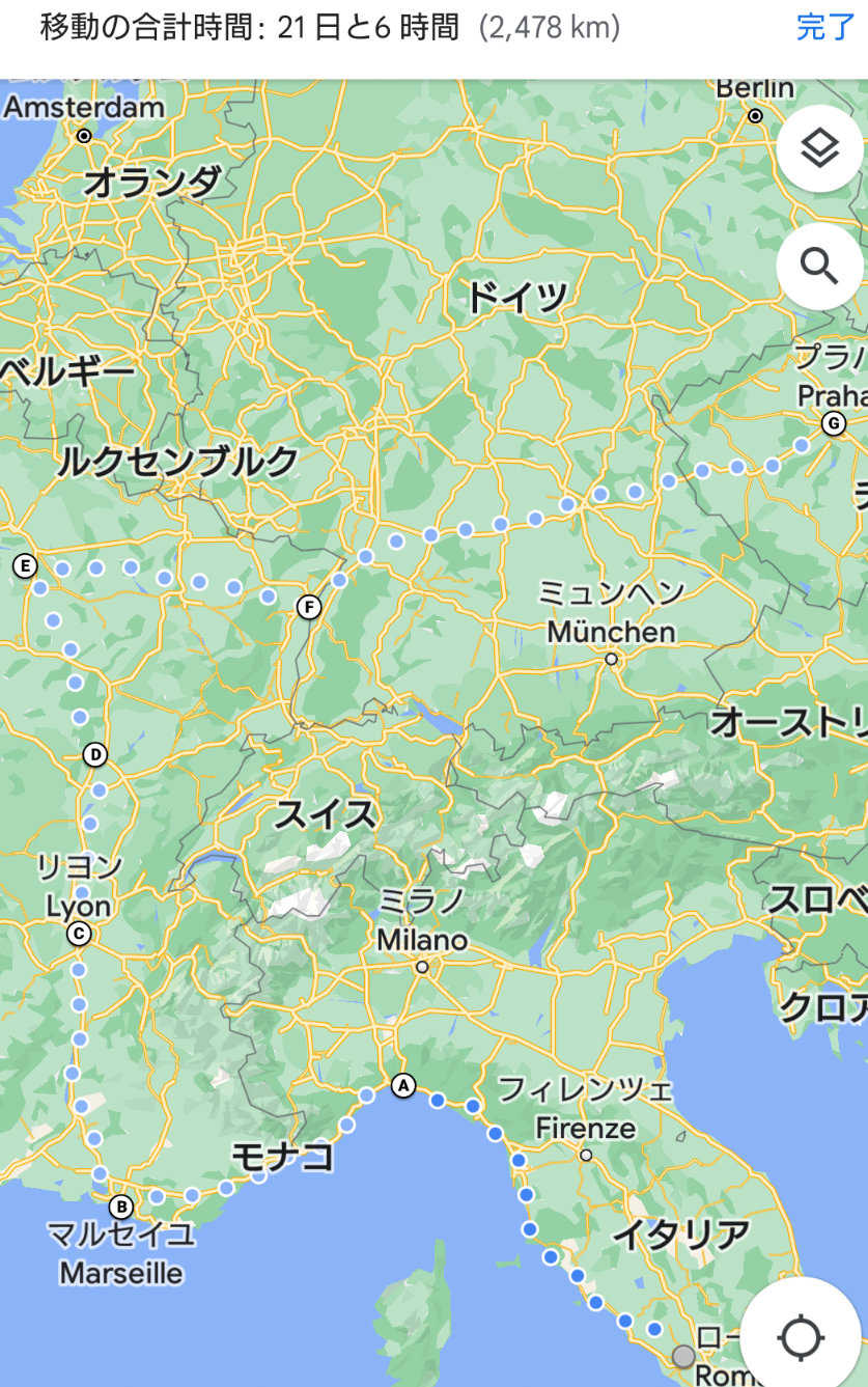 で、今回もGoogleMAPにて、ランド編の旅程を作ってみました。イメージ出来ると良いのですが。