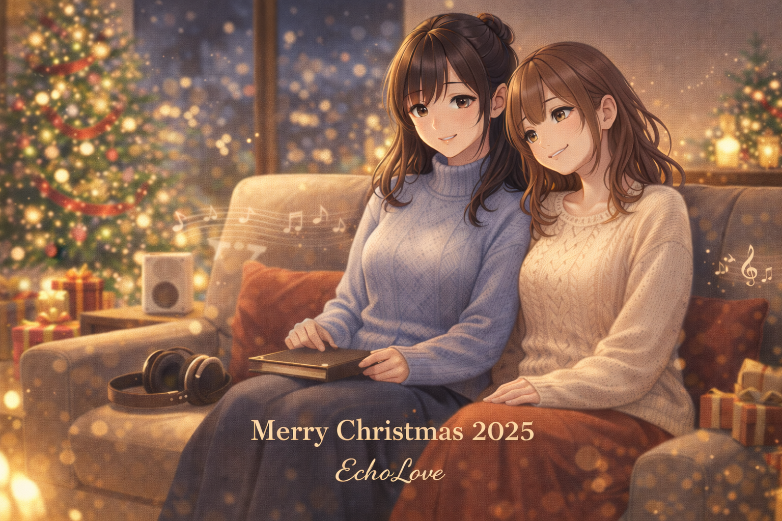 ぶいあま(美少女Vtuberが近くて甘い!防音マンション管理人の配信者生活♡)に登場するトーコとシズのクリスマス画像をAIで作成してみました。