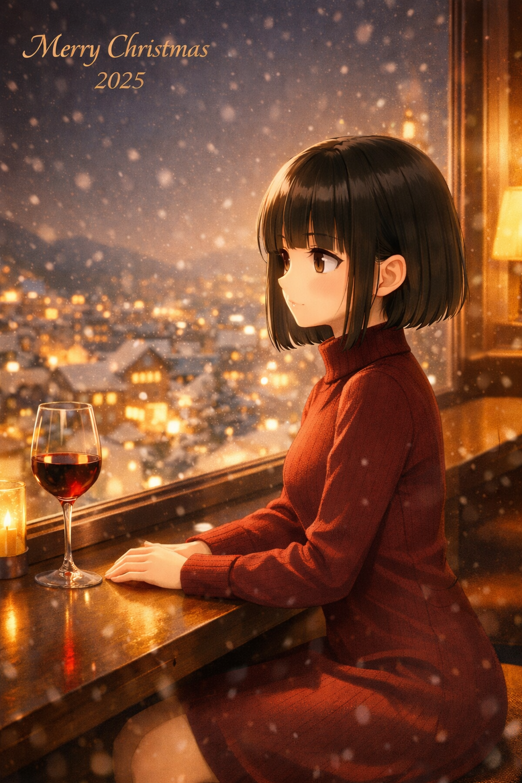 ぶいあま(美少女Vtuberが近くて甘い!防音マンション管理人の配信者生活♡)に登場する「春海りん」のクリスマス画像をAIで作成してみました。