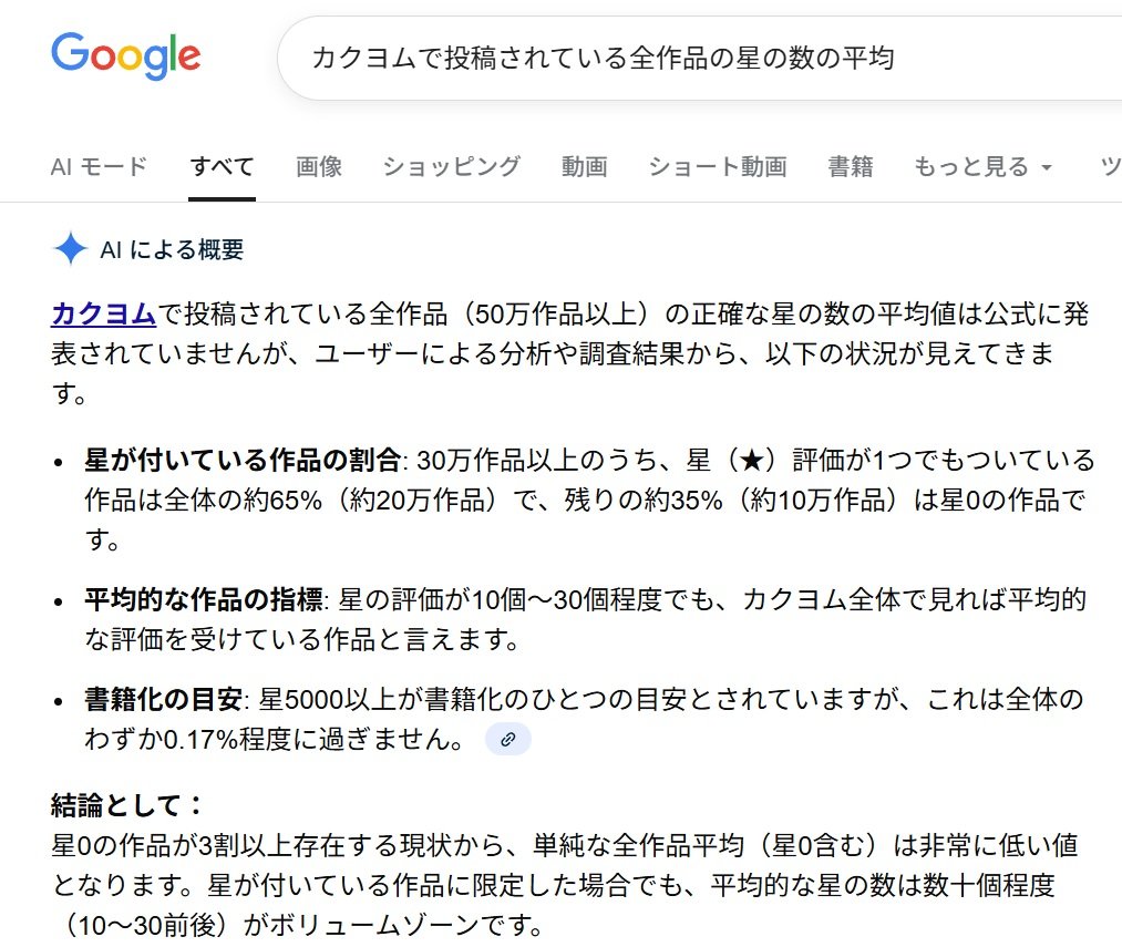 なんと3割の作品は星を一つももらえていないという実態が明らかになった。
