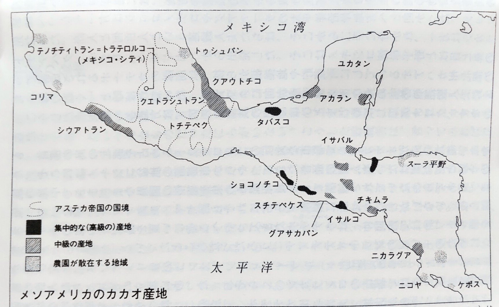 挿絵は、『メソアメリカのカカオの産地』です。