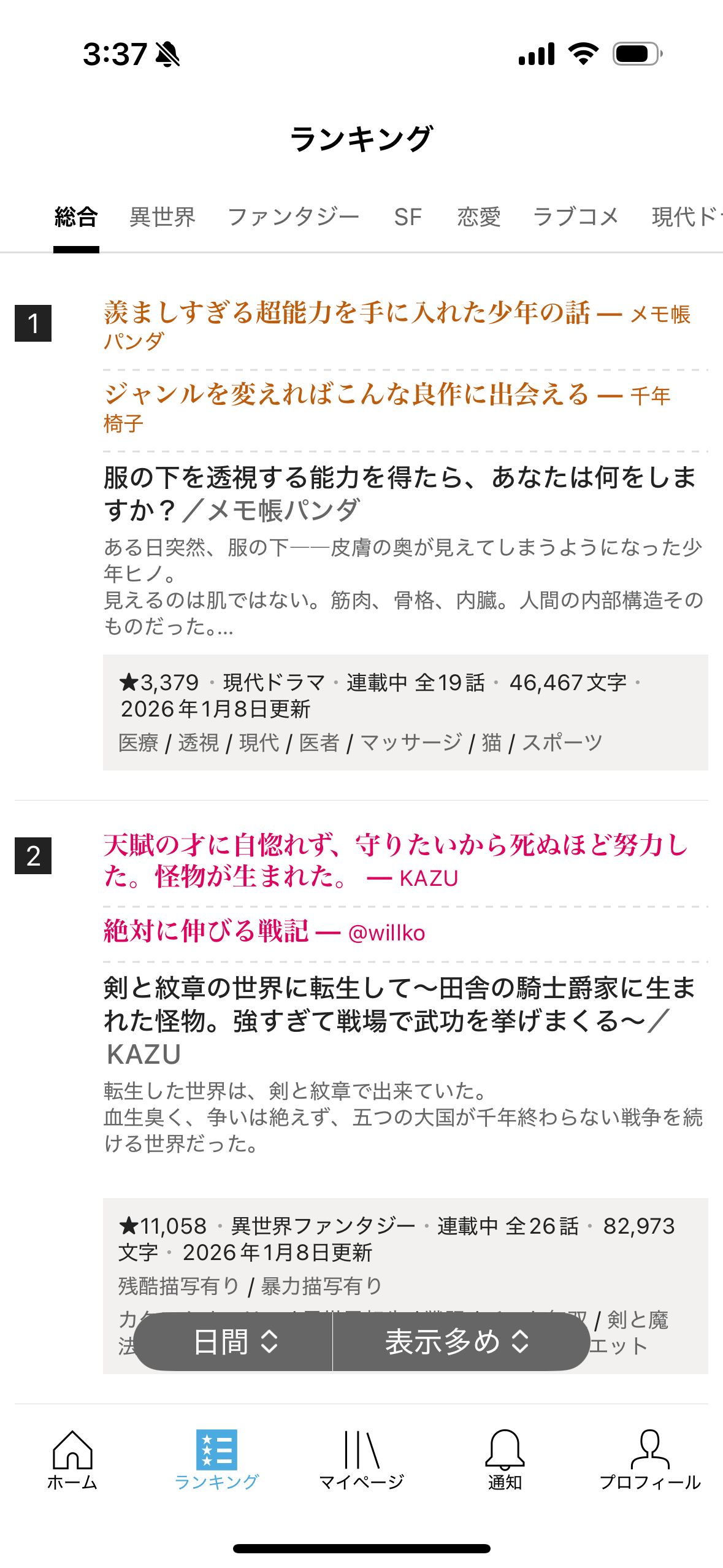 最近、日刊何位かなぁーってランキングが降りてくる朝3時くらいに見るのが趣味なんですが、