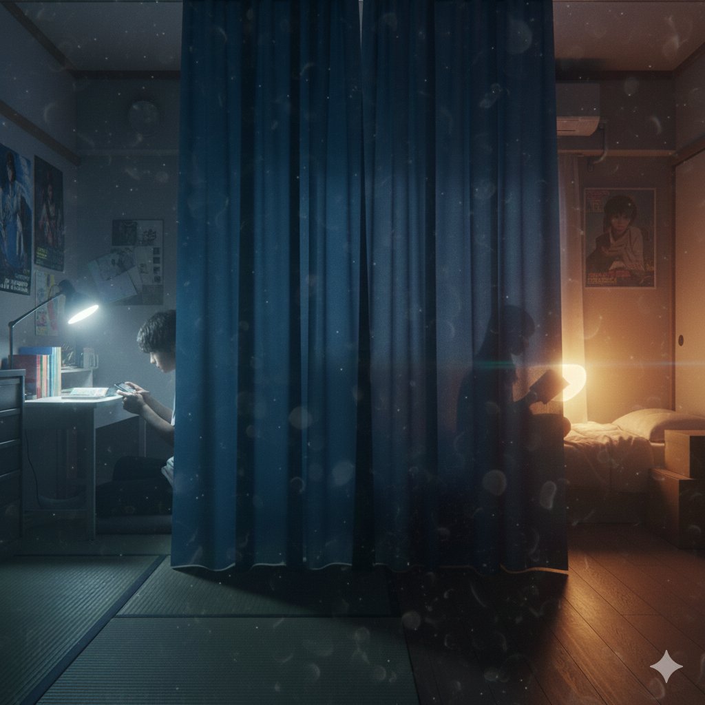 子供部屋、カーテン越しの未知