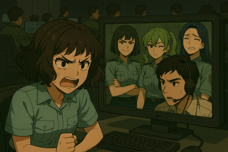 画像はひたすら西の作業を邪魔するかなめ、アメリア、カウラにキレるひよこ