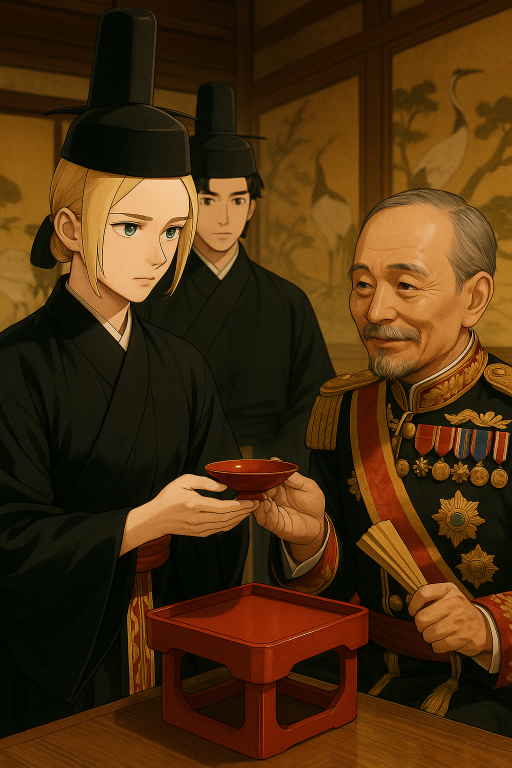 西園寺御所の一隅に信頼できる家人だけを集めて行われた秘密裏の家督相続。