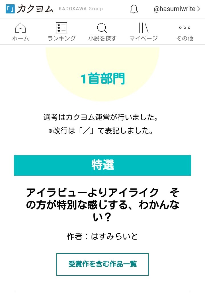 初めて受賞?したのは短歌でした。次もナツガタリ自体は開催するらしいので内容次第では参加したい。カクヨム短歌賞もあれば挑みたい(選ばれなくても)
