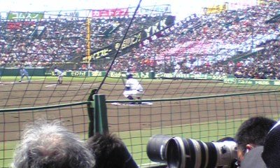 2007年のガラケーの写真ゆえ、粗いのはご勘弁を。2007年選抜高校野球準々決勝常葉菊川対大阪桐蔭選。バックネット裏からネクストバッターズサークルの中田翔選手を撮影したものです。とにかくデカく見えたという印象です。