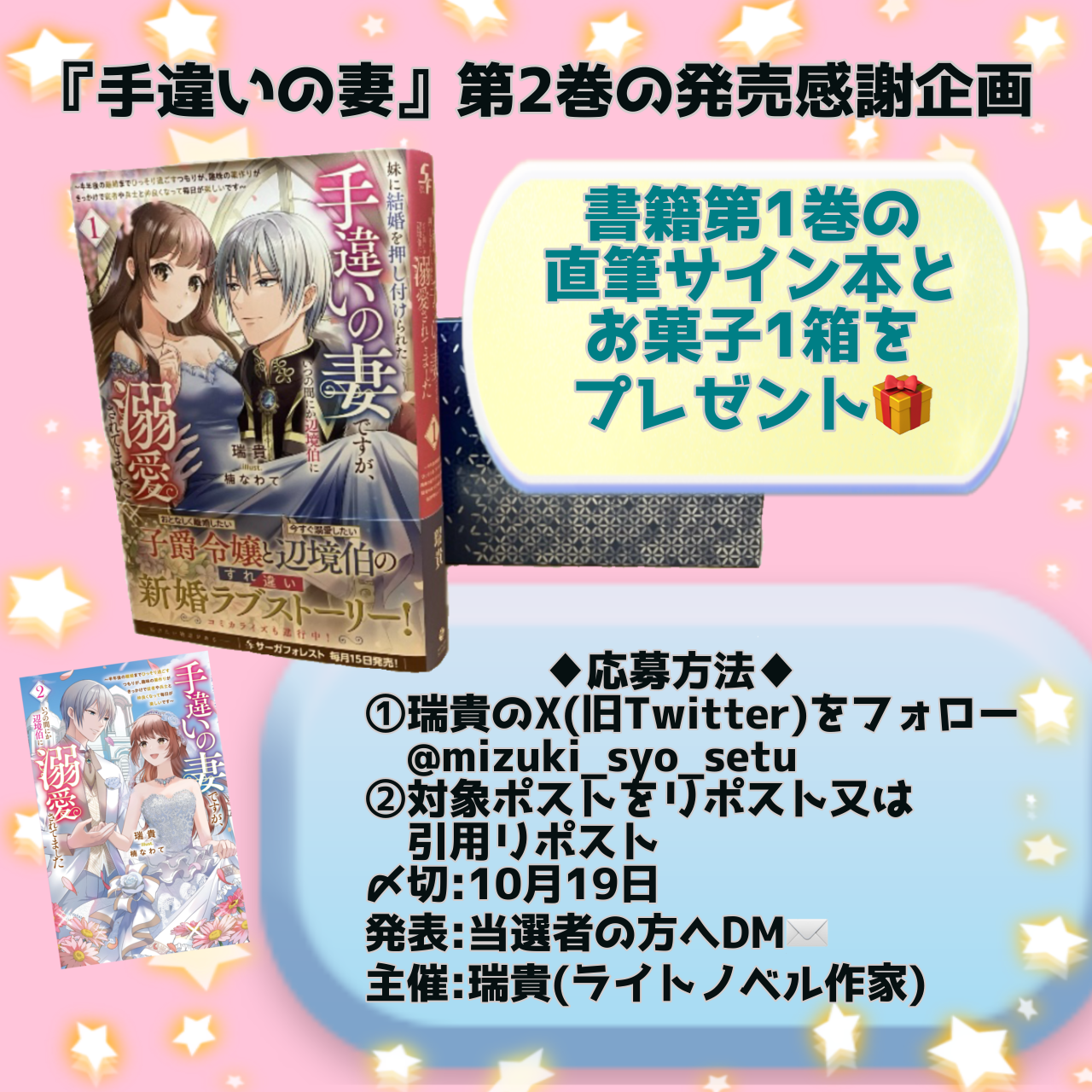 2024年10月19日まで第2巻発売の記念して、瑞貴主催のサイン本プレゼント企画を開催しています!