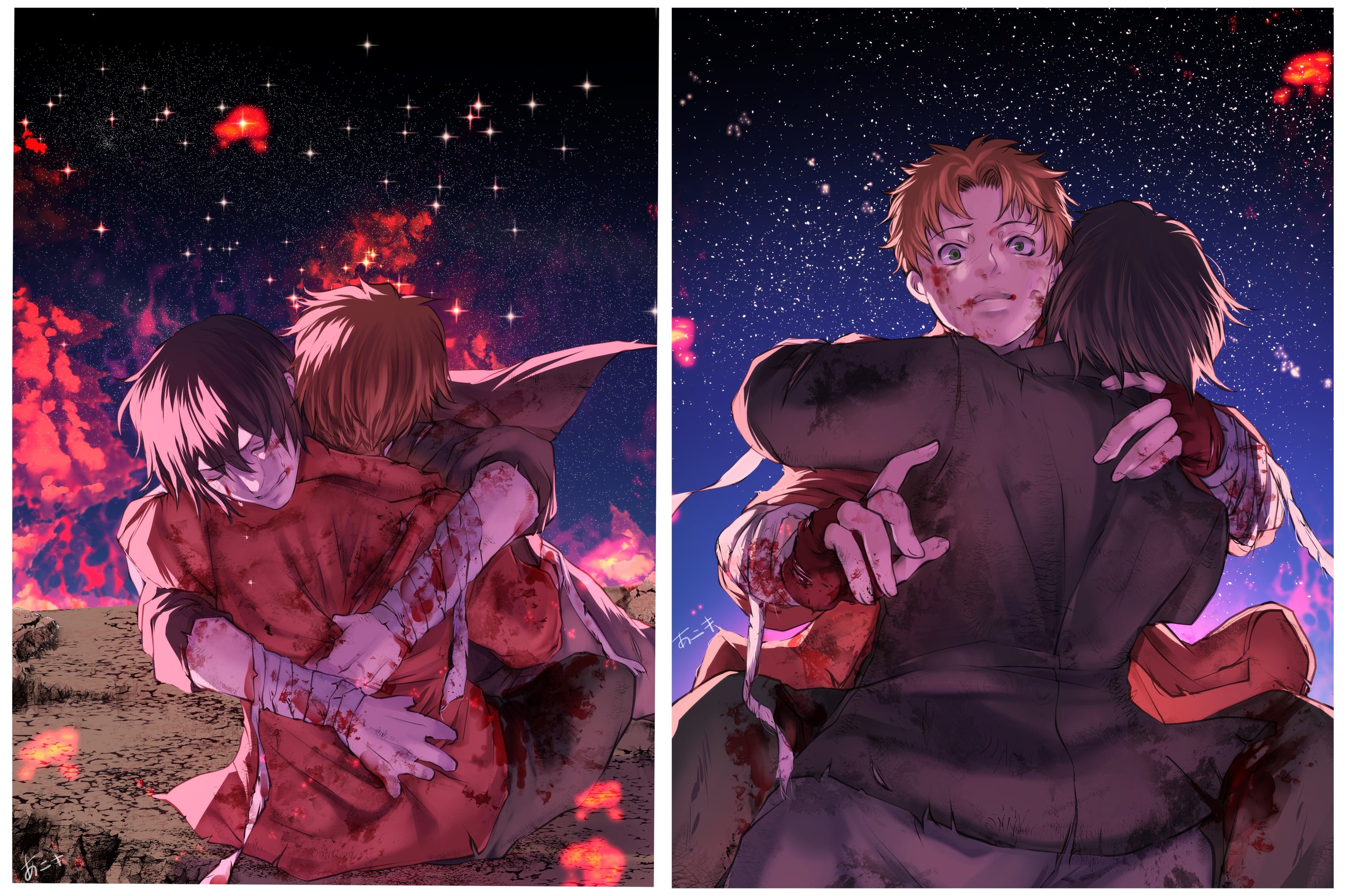 男女カップルのラブラブ♡ハグ絵を依頼して、描いて頂いたことは以前ありましたが、非ロマンス系男男コンビの激アツなハグ絵を依頼したのは、今回が初めてです(実は)