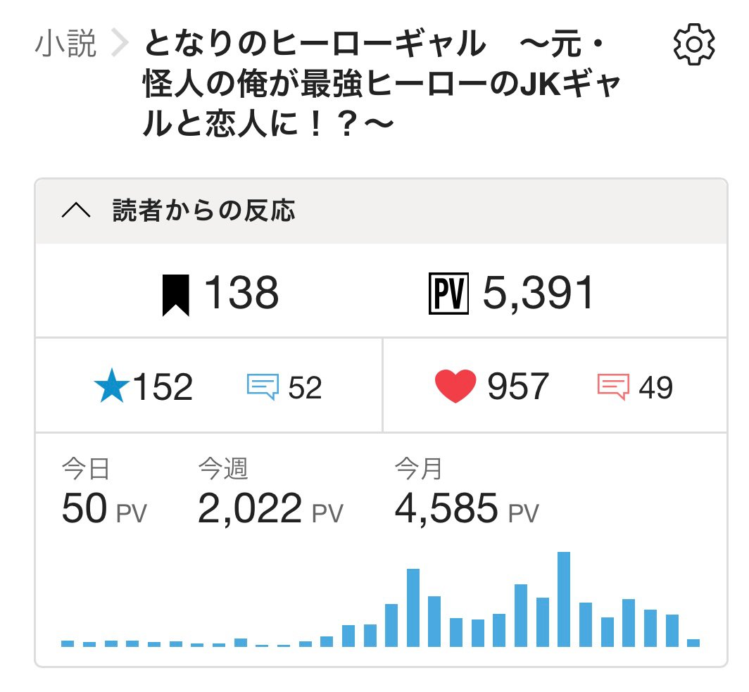 参加作品「となりのヒーローギャル」ですが、おかげさまで累計5000PVと☆150個を突破いたしました✨