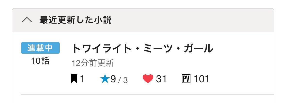 拙作「トワイライト・ミーツ・ガール」の累計⭐︎9と、閲覧数が100PVを突破いたしました!