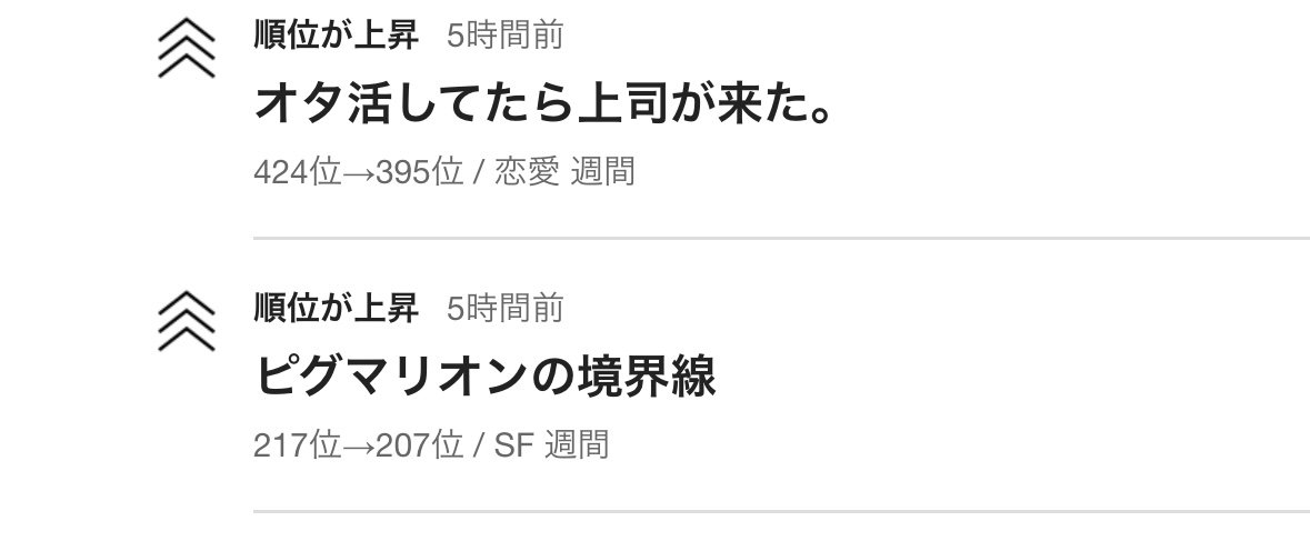 オタ活〜のほうはBL小説だし、ルビー小説大賞応募期間の締切に間に合うことのみ意識しただけで書いた小説なのでランキングはあんまり気にしていませんでしたがやはり嬉しいです。