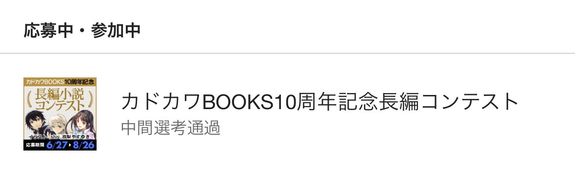 絶対無理だろこの作品は…と思ってたんですけど、「カドカワBOOKS10周年記念長編コンテスト」中間選考突破してました。