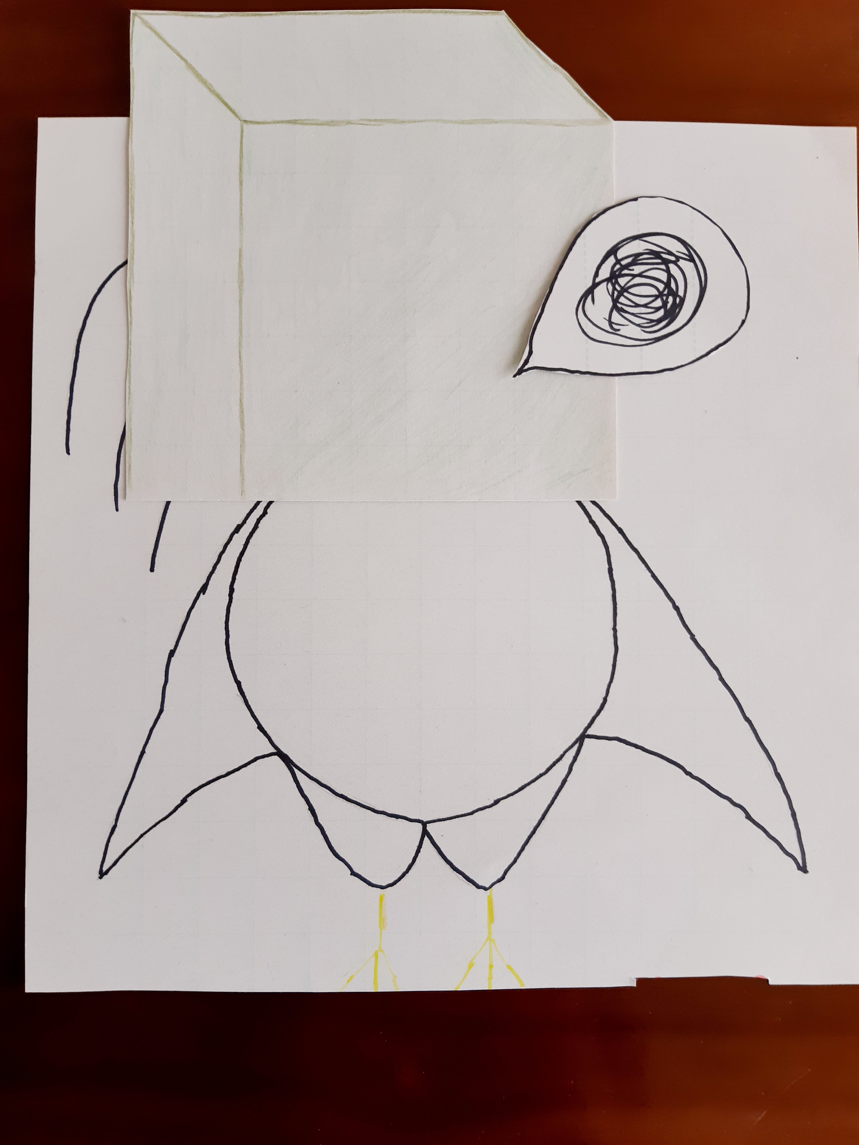 近況ノートに載せているイラスト。右向きのフレイムを見ていて、鳩に見えてきました。箱をかぶっていますが。鶏をモデルにして、鶏を描いたはずなのに。画力の無さが出ました。イラストを描かれる人、スゴイですね。