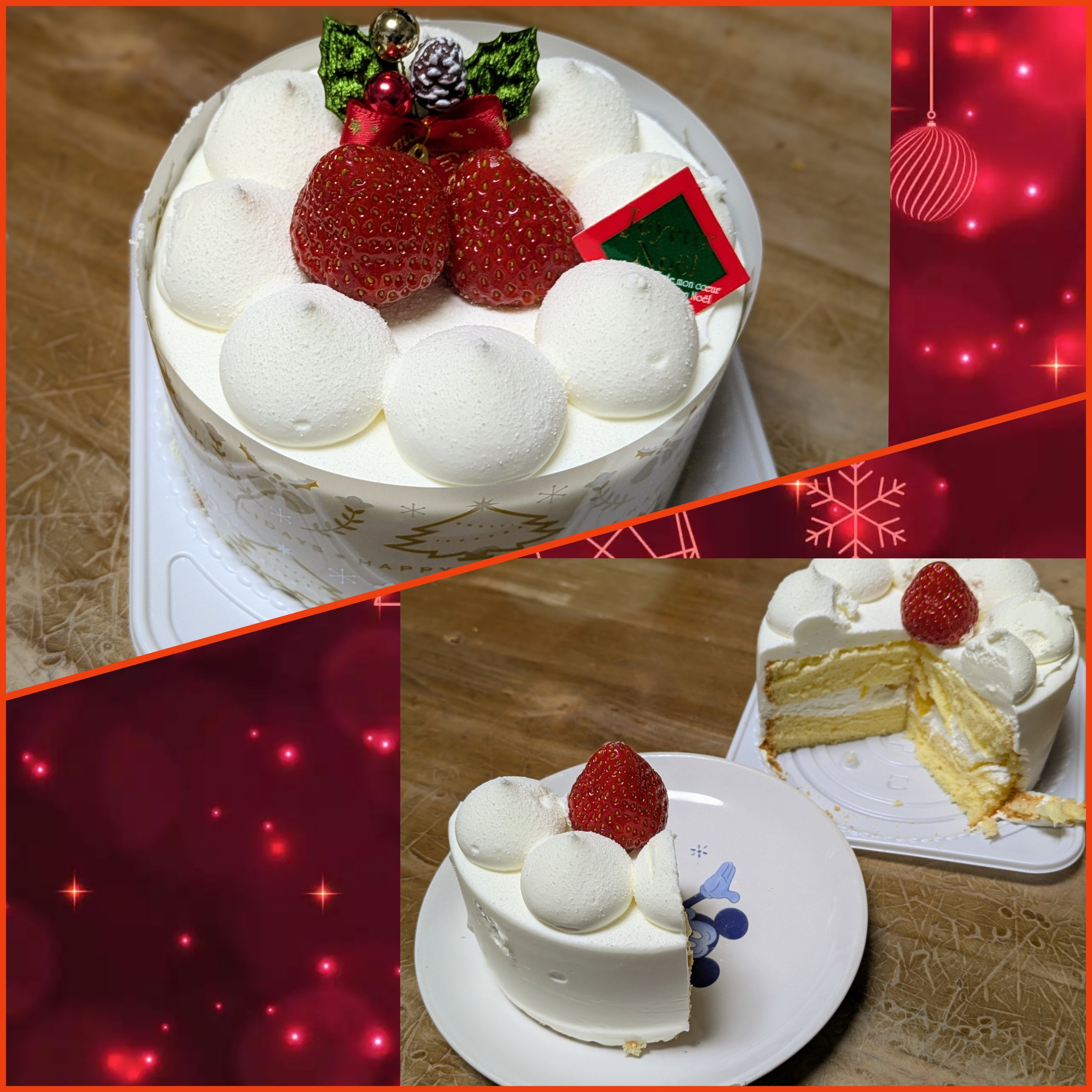 買ってきたクリスマスケーキと、うちでの分け方(笑)。