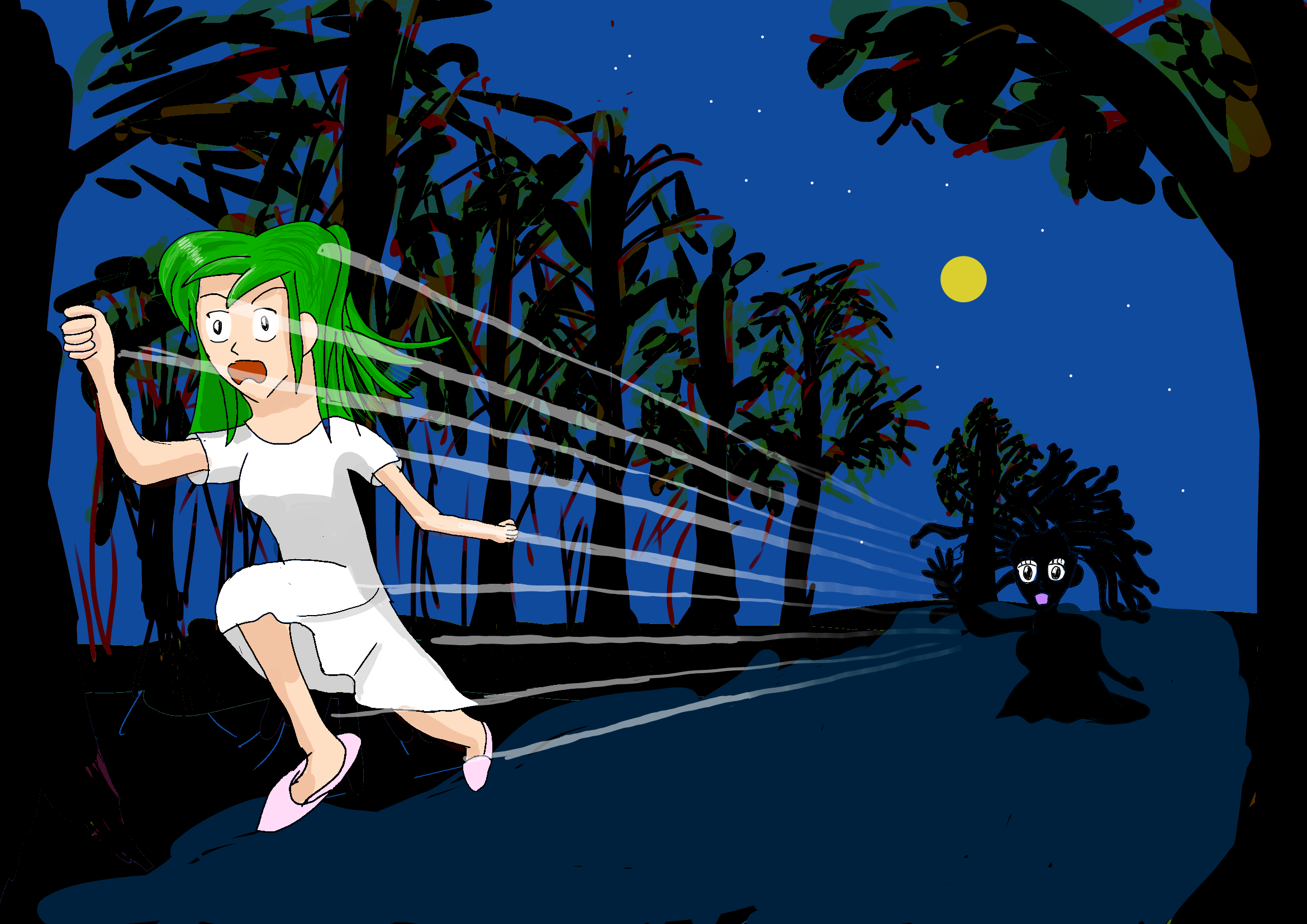 というわけで「Magic Loaders」第1話の場面を描いてみました.ヒロイン、サーイ・ライガ。突然地球から異世界エグゼルアに召喚されたその夜、謎の少女に助けられるも、その「初見では誰もが驚愕するビジュアル」に驚いて逃走。