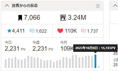 🖋昨日のPVは15103。久方ぶりに15kオーバー。🎉✨