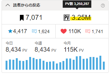 🖋15:56、累計PV3.25M突破を確認しました。🎉✨