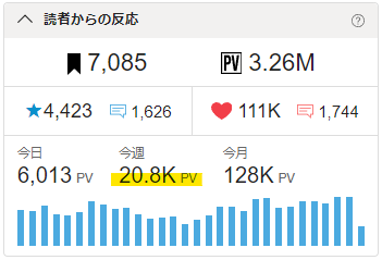 🖋今週のPV早くも20k突破! 2日平均10k/日を早々にクリア!👍