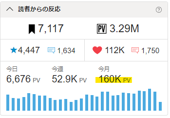 🖋今月のPVが160kを超えました。🎉✨ 頑張れ!💪😊