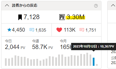 🖋昨日のPVは10367。ギリギリ10kPVを突破!🎉✨