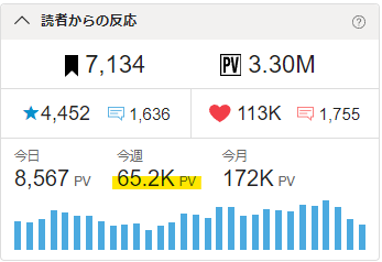 🖋今週のPVが65kを突破!🎉✨ 5日平均で13k/日をクリアしました。😃