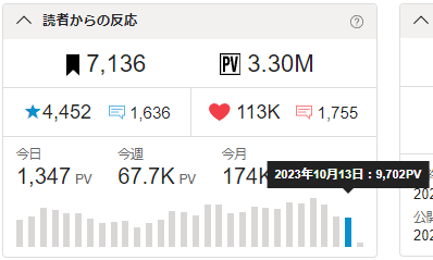 今朝の段階で累計PVは3309.5kと331万到達目前。これはサクッと達成しよう!