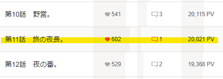 【記録用】#11までの各話PVが20kを突破しました!🎉✨ 「🍚🥢飯屋」。