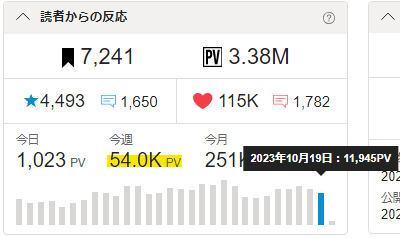 🖋昨日のPVは11945。終盤伸び悩みましたね。💧