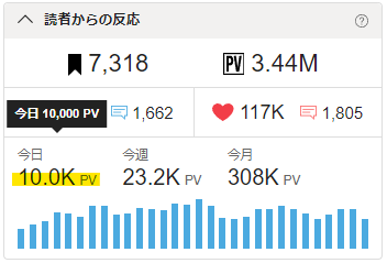 本日のマイルストーン。10000PVピッタリを捕まえました。👍