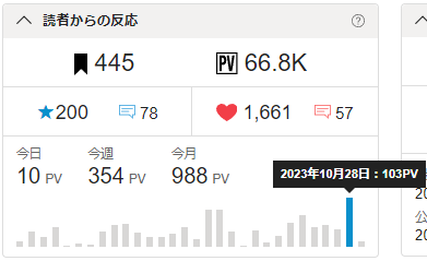 🖋そしたら、今月のPVが988まで伸びまして、あと2つで1000PVです。📈