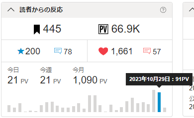 累計PVはもう少しで67kに到達。