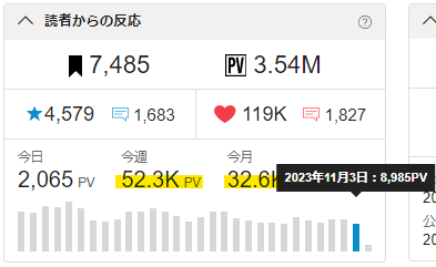 🖋今週のPVは昨日終了時点で50k突破!🎉✨ 5日平均では10k/日キープ!👍