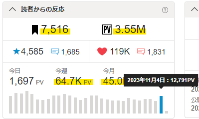 🖋そして累計PVが3.55Mを突破!🎉✨ ナイス前進!👍
