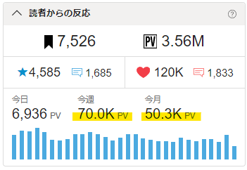 🖋今週のPVが70kを突破!🎉✨ 7日平均で10k/日を確保!👍