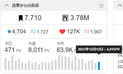 🖋昨日のPVは4015。更新してようやく4k確保ですね。💧