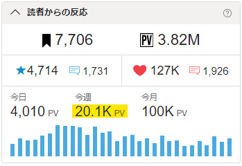 【記録用】今週のPVが20kを突破した「🍚🥢飯屋」。!🎉✨