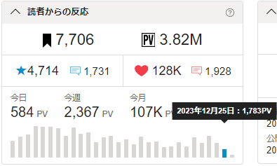 🖋昨日のPVは1783。更新なし2日目は厳しい。😢