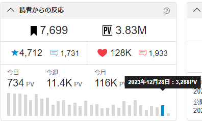 🖋昨日のPVは3268。週末~年末年始という流れで、どう動くか?